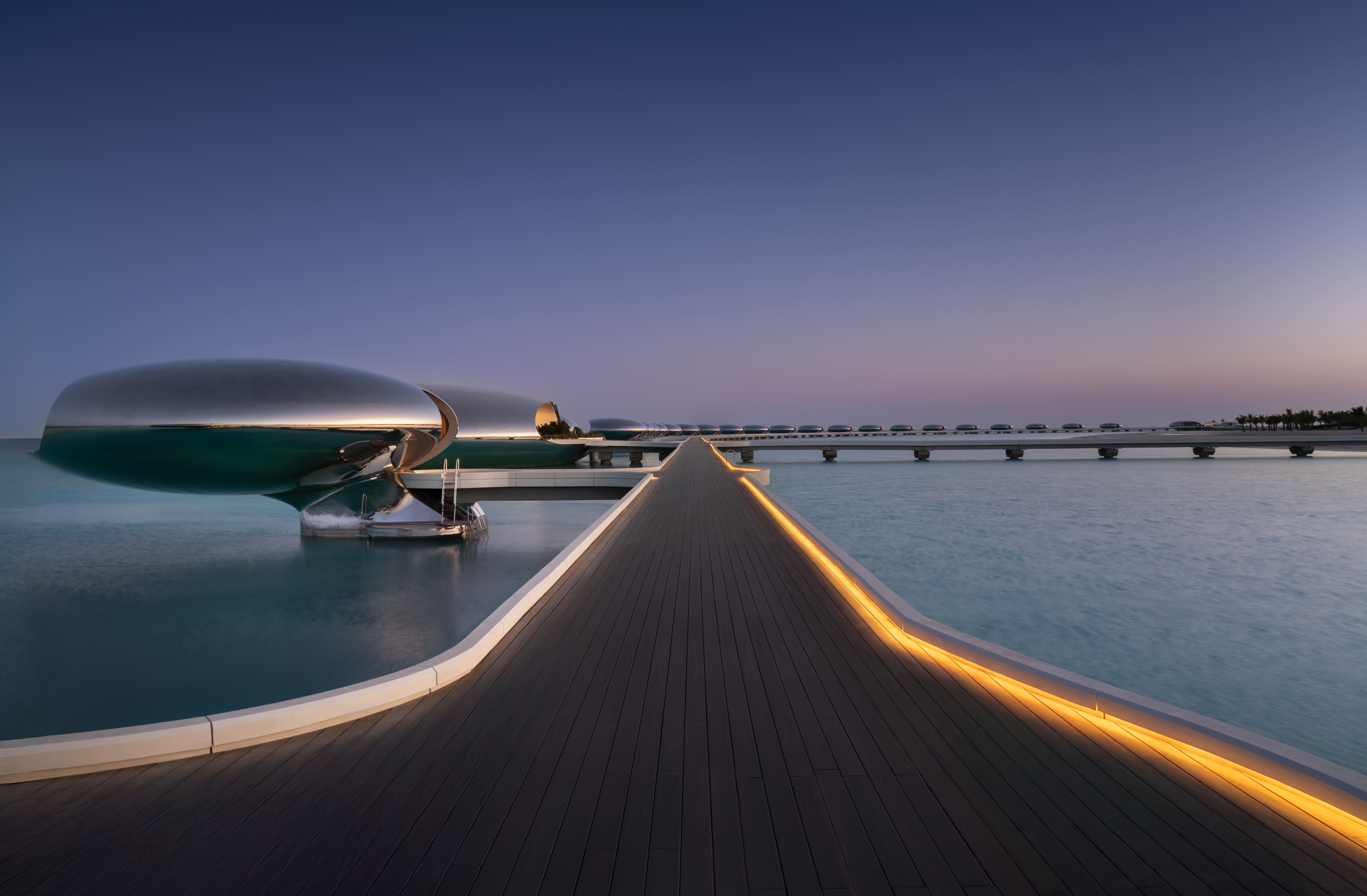 Rooted in a masterplan shaped by futurism and respect for natural context, Shebara’s sculptural forms demanded a lighting strategy that could enhance, not overpower—complement, not compete. In collaboration with Light Touch PLD, LEDFlex delivered a fully bespoke linear lighting scheme that fluidly integrates with the architecture, supporting the project's strong narrative of seamless transition between land, water, and sky.