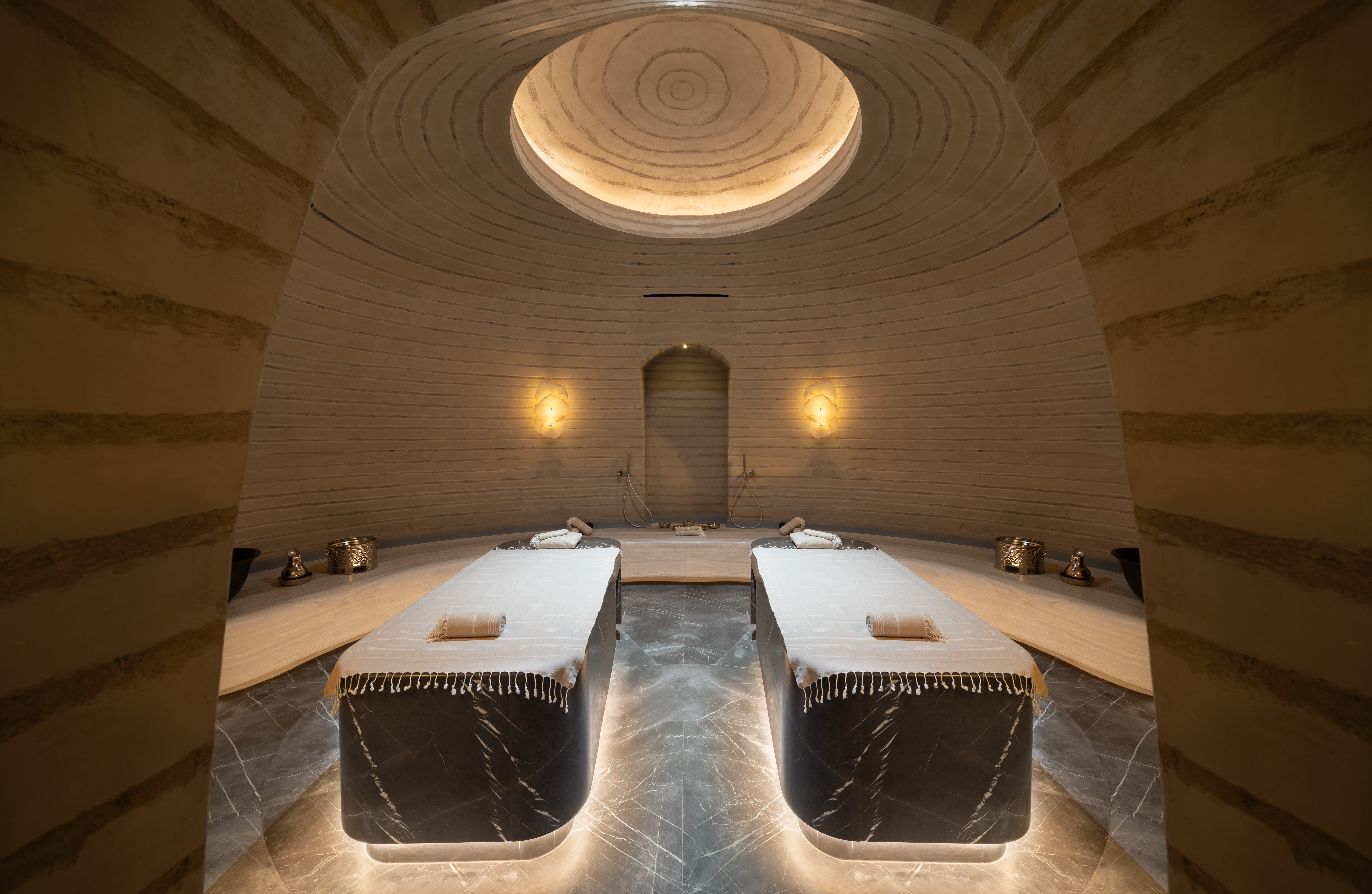 In the spa and hammam facilities, lighting solutions had to perform in extreme conditions of heat and humidity. Here, Thermo Neon from the Flexi Neon series was the solution of choice. Designed for challenging environments, Thermo Neon delivers consistent performance and uniform glow, ensuring the spa retains its atmospheric immersion while meeting the highest durability standards.