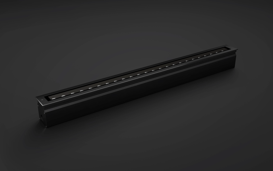 Rigid linear in-ground fixtures with precision optical control for high-performance exterior wall grazing